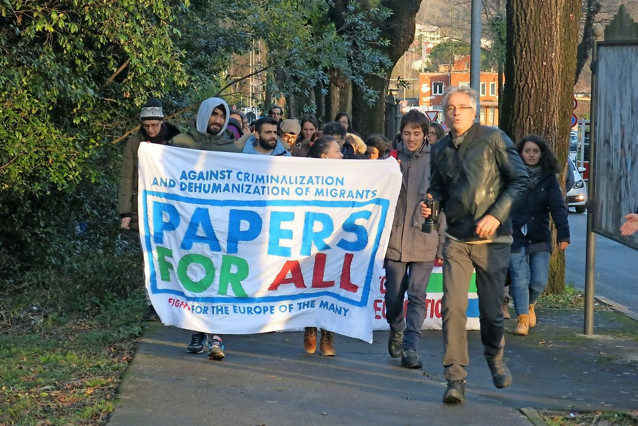 V Goricah na obeh straneh meje se je odvil protest "Restiamo Umani/Dobrodošla človečnost", ki je kritiziral ukrepe italijanske vlade in Evropske unije do migrantov. Protesta se je udeležilo približno 350 protestnikov iz Slovenije in Italije. Protest je sprožilo dogajanje v predoru Bomba v Gorici, kjer so do pred enim mesecem v človeku neprimernih razmerah živeli migranti. Predor so nato zaprli, vendar vseh migrantov niso preselili v nastanitvene centre. Del migrantov se je zato naselil na obrežja Soče. Na protestu so nevladniki tako poudarili, da je postavitev začasnega bivališča za migrante, v obliki šotora za 60 ljudi, sicer vsekakor boljša alternativa predoru, vendar pa je tudi ta šotor v goriškem parku že poln. Vsak dan v Gorico prispe tudi do 25 prosilcev za azil, nastavitveni centri pa so že polni.