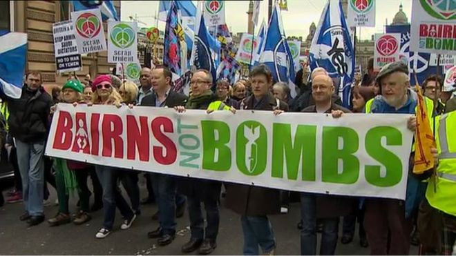 V začetku tega tedna so na Škotskem pred vojaško bazo v Falestinu potekali protesti proti nadaljevanju britanskega vojaškega jedrskega programa. Več sto protestnikov se je zbralo pred pomorsko bazo v Falestinu, kjer je privezana flota britanskih jedrskih podmornic. Več v Britoffu ob 8.00.