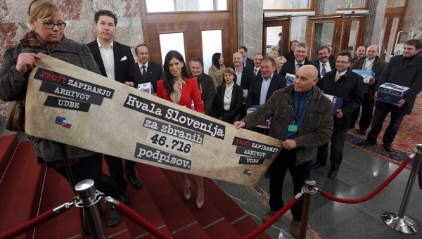 Današnji Britoff začenjamo kar v Sloveniji. Na včerajšnjem referendumu o zakonu o arhivih je po še neuradnih podatkih glasovalo zgolj 11.68 odstotka volilnih upravičencev. Za veljavnost referenduma bi moralo proti zakonu glasovati vsaj 20 odstotkov vseh volilnih upravičencev, tako je tokratni rezultat posledica neudeležbe. Sicer je za zakon glasovalo nekaj manj kot 33 odstotkov tistih, ki so prišli na volišča.