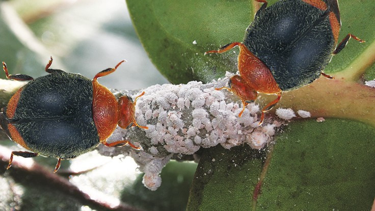 *Cryptolaemus je rod hroščev, ki se prehranjuje med drugim prav z volnatimi ušmi.