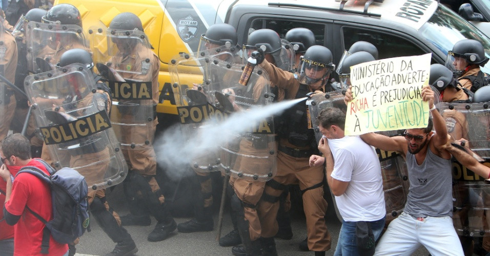 Napetost v Curitibi se je tako po razglasitvi stavke prejšnjo soboto in postavitvijo tabora pred skupščino v ponedeljek le stopnjevala. Ko je nekaj protestnikov poskušalo na dan glasovanja o spremembi pokojninskega sistema vdreti v skupščino, je policija odgovorila z grobim protinapadom, kar je manj presenetljivo, če vemo, da je lani podoben protest rezultiral v zasedbi skupščine in preprečitvi sprejetja paketa varčevalnih ukrepov. Tokrat je bil protest manj uspešen, saj so po tem, ko je bila obravnava zaradi solzilca v dvorani najprej prekinjena, poslanci skupščine zvezne države Parana spremembo pokojninskega sistema sprejeli.