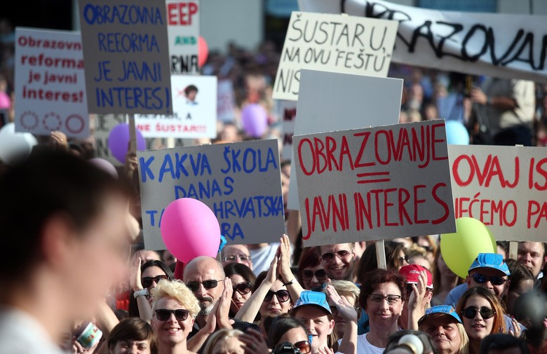 Po Hrvaški se je odvila množica protestov v podporo reformi šolstva. Njeno sprejetje je zastalo, saj je zaradi vladnih pritiskov odstopila strokovna skupina, ki je reformo pripravljala. V Zagrebu naj bi se zbralo med 15 in 50 tisoč ljudi, shodi pa so potekali tudi v drugih hrvaških mestih. Nasprotovanje reformi prihaja z desne in je podprto s hrvaškim klerom.