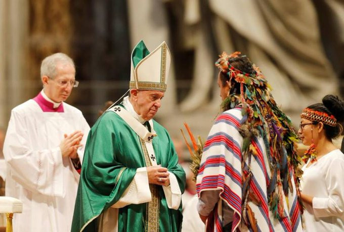 Ena izmed stvari, ki so dvignile prah, je tudi to, da so staroselci prinesli svoje kipe, ki predstavljajo mati naravo, v baziliko svetega Petra v Rimu.