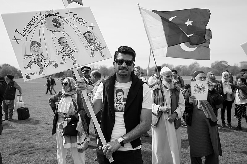 Vir fotografije: Alisdare Hickson: Standing against the US/dark money backed coup in Pakistan, Wikipedia All Creative Commons