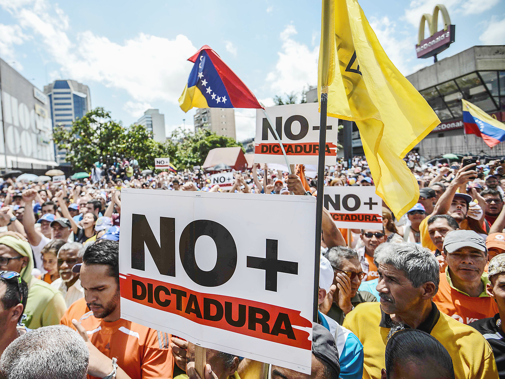 Dandanes je venezuelska vlada s strani mednarodnih medijev in mednarodnih akterjev, kot sta ZDA in Evropska unija, zasipana z opredelitvami nedemokratičnosti oziroma diktatorstva. Po vladni razglasitvi ustavodajne skupščine se je število tovrstnih obtožb potenciralo, kar je voda na mlin tamkajšnji opoziciji, ki skuša naraščajoče konflikte predstaviti kot boj večine ljudstva proti nedemokratični in nelegitimni vladi. A kot opozarja Richard Seymour, tovrstne obtožbe venezuelske oblasti s strani zahodnih medijev niso nič novega. Te je bilo zaslediti tudi pred dvema letoma, New York Times pa je ob državnemu udaru in odstavitvi predsednika Huga Chaveza leta 2002 proslavil konec diktature. Ob tem je v skladu s takratno linijo Busheve administracije - ki je bila posredno vpletena v državni udar - poročanje dotičnega časnika izpustilo pripoznanje obstoja udara.