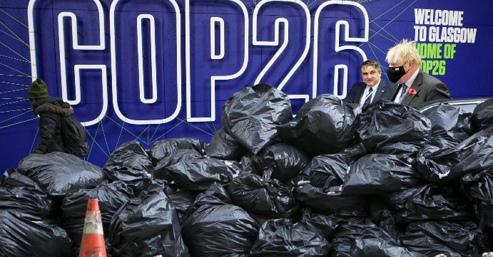 Tudi pri globalnih dogodkih lokalna problematika ni za odmet. V Glasgowu, kjer se bo svetovna srenja srečala na podnebni konferenci COP26, so opolnoči začeli stavkati smetarji in smetarke, ki so že dlje v sporu z mestnim svetom. Ker sindikat z mestnim svetom ni dosegel dogovora, je napovedal stavko za ves naslednji teden. Delavci so se zavzemali za letno povišico v višini približno 2300 evrov, podjetje za smetarske storitve Cosla pa je v odgovor predlagalo povišanje plače za 1200 evrov letno. V petek je sindikat napovedal posvetovanje s svojimi člani glede ponudbe, v nedeljo pa so stavko vseeno potrdili.
