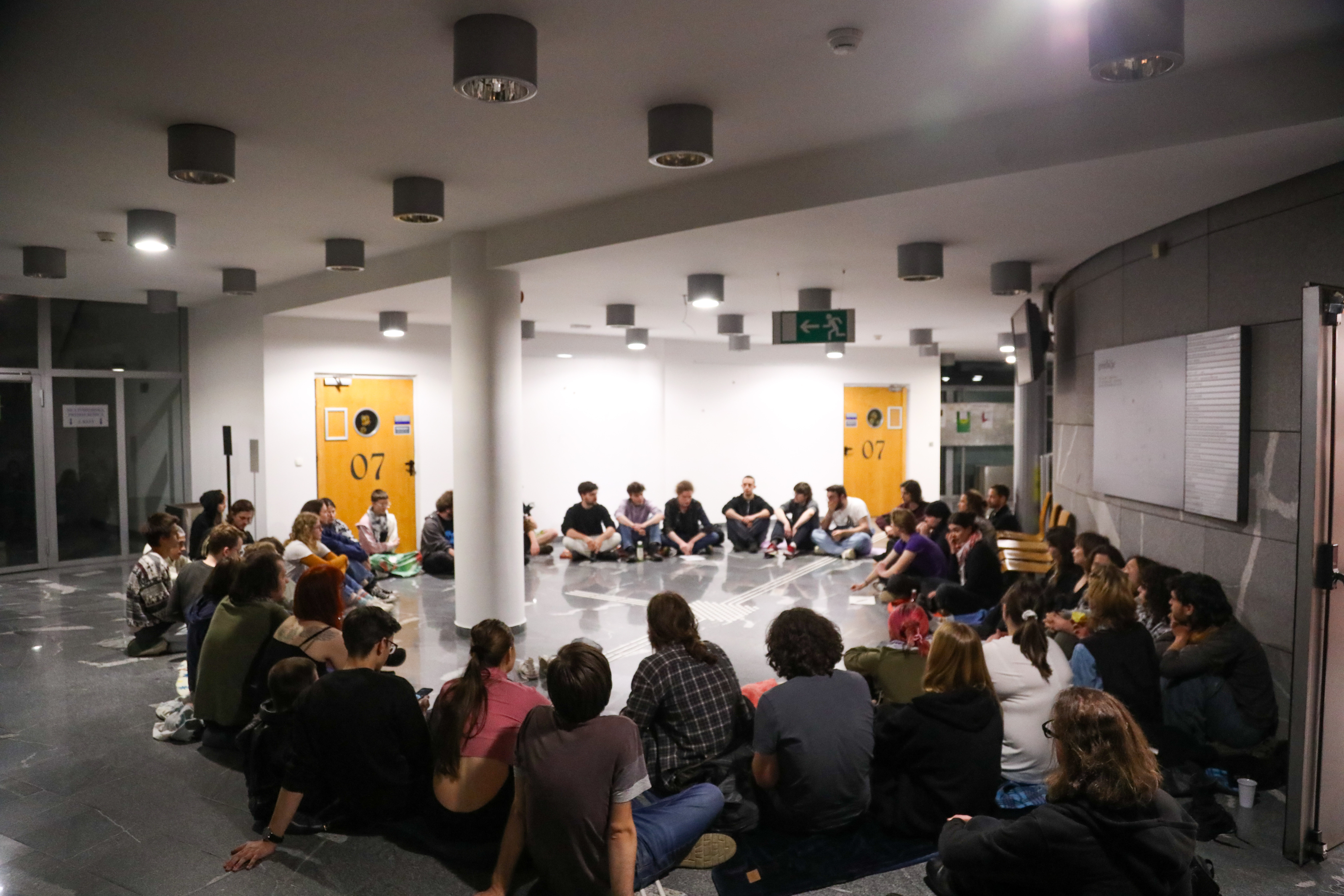 Dekanja ljubljanske filozofske fakultete Mojca Schlamberger Brezar je študentom, ki tretji dan zasedajo osrednjo predavalnico fakultete za družbene vede, ponudila organizacijo javne razprave. Cilj razprave bi bilo oblikovanje skupne izjave za javnost. Po trenutnih informacijah bi razprava potekala na filofaksu, in sicer naslednji četrtek. Poleg dekanje filofaksa bi se je udeležila še dekan FDV-ja Iztok Prezelj in rektor ljubljanske univerze Gregor Majdič. Prezelj je sicer včeraj dogajanje v Gazi prvič javno prepoznal kot genocid in dodal, da se s študenti glede vrednot in zahtev v povezavi s pomori v Gazi načeloma strinjajo, a imajo manjše razlike v dikciji. Kako lahko razumemo ponudbo za organizacijo javne razprave, komentira terenski poročevalec aktualnopolitične redakcije Fin: