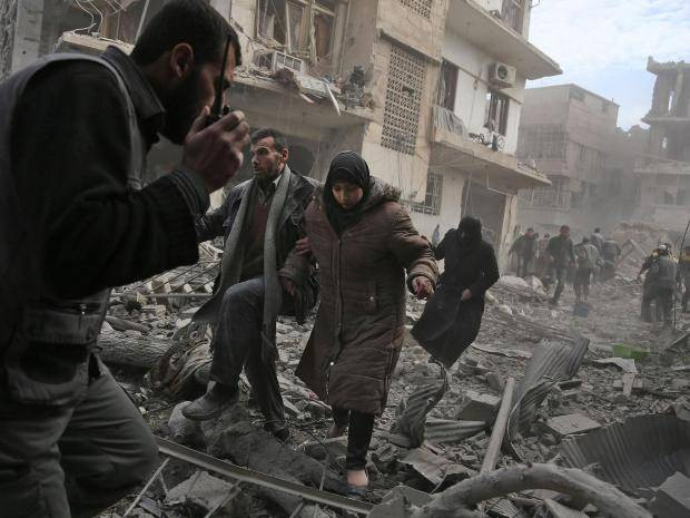 Iz sirske enklave Vzhodna Guta različni viri poročajo o kršitvah današnje, le nekajurne, humanitarne prekinitve ognja. Po navedbah Sirske civilne zaščite oziroma tako imenovanih belih čelad so letala sirskih vladnih sil znova napadla mesti Douma in Harasta, napadi pa naj bi zahtevali najmanj dve smrtni žrtvi. Da se spopadi nadaljujejo, je potrdil tudi humanitarni urad Združenih narodov, sirski državni mediji pa za kršitev premirja obtožujejo upornike, ki naj bi obstreljevali humanitarno pot, civiliste pa uporabili kot živi ščit. Sirska vojaška letala naj bi z napadi začela le pol ure po nastopu nekajurnega premirja, ki bi moral trajati od 9. do 14. ure po lokalnem času. Začasno ustavitev spopadov, ki bi omogočila odhod civilistov preko edinega humanitarnega koridorja med Vzhodno Guto in Damaskom, je odredila Rusija, potem ko je propadla 30-dnevna prekinitev ognja, izglasovana v Varnostnem svetu Združenih narodov v soboto.