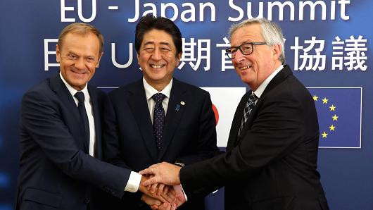 Pred srečanjem v Hamburgu pa sta v podporo prosti trgovini Japonska in Evropska unija podpisali politični dogovor o prostotrgovinskem sporazumu. Politični dogovor pomeni zavezo za zaključek pogajanj, ki sicer trajajo od leta 2013, medtem ko nekatere podrobnosti sporazuma še niso dogovorjene. Tako kot pri ostalih prostotrgovinskih sporazumih je problematična netransparentnost procesa sprejemanja. Pojasni Andrej Gnezda iz organizacije Umanotera: