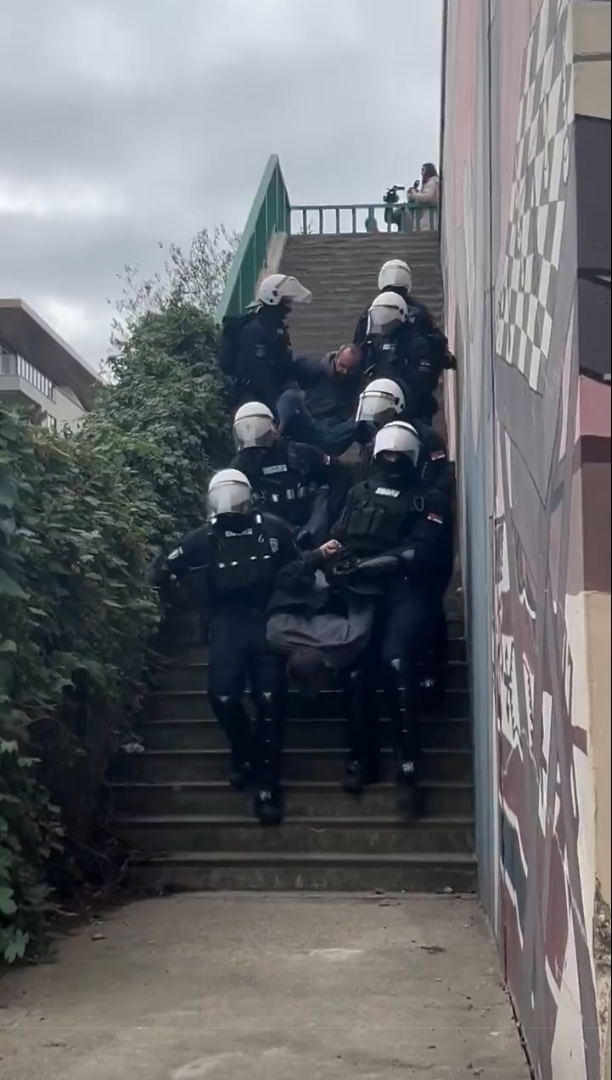 Beograjska policija je zgodaj zjutraj razbila okupacijo starega savskega mostu, ki jo je vodila civilna iniciativa Mostaje. Protestniki so na mostu dežurali čez noč, ob 3.40 zjutraj pa so jih pregnali policisti v polni protidemonstrantski opremi. Pozneje je policija na obeh straneh mostu postavila betonske barikade, bagri, ki so bili na mostu že prej, pa so pričeli z odstranjevanjem asfalta in železniških tirov. Zasedba mostu se je začela prvega novembra, nekaj dni po tem, ko so mestne oblasti napovedale njegovo rušenje. Opoldne so se pregnani protestniki premaknili na Brankov most, ki ga želijo zasesti kot odgovor na pregon s savskega mosta. Savski most so zgradili nacistični okupatorji leta 1942, je samo en od treh mostov, ki povezujejo center Beograda z Novim Beogradom. Več o protestu v OFFsajdu ob petih.