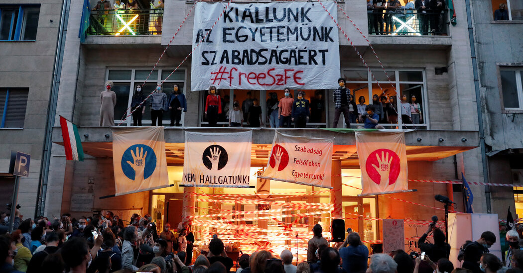 Študentje budimpeške Univerze za gledališko in filmsko umetnost ter nekaj tisoč njihovih podpornikov so sestavili človeško verigo, ki je segala od zgradbe univerze do parlamenta. Protestirali so proti spremembam načina upravljanja univerze. Študentje, ki Univerzo za gledališko in filmsko umetnost zasedajo že teden dni, trdijo, da ji je vlada odvzela avtonomijo. Po spremembah zakonodaje, ki jih je sprejela vlada Viktorja Orbána, je upravljanje univerze prevzela zasebna fundacija za gledališče in umetnost, ki jo vodi Attila Vidnyánszky, direktor nacionalnega gledališča. Po mnenju vlade bo univerza, ki ima okrog 450 študentov, zaradi sprememb delovala bolj neodvisno od države. Odbor, ki ga je imenovala fundacija, je senatu univerze že odvzel pooblastila za odločanje o glavnih proračunskih zadevah univerze. Člani senata in dosedanje vodstvo univerze so v znak protesta odstopili, a bodo funkcije vseeno opravljali do konca meseca. Namestnik rektorja v odstopu je s študenti, ki zasedajo univerzo, dosegel dogovor o preložitvi odprtja univerze za teden dni, rok za vpis pa je podaljšal do 13. septembra.