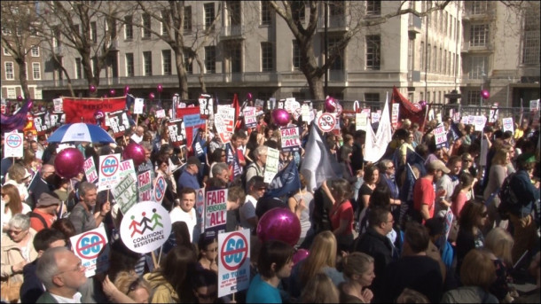 V Londonu poteka množična stavka javnih uslužbencev. V najbolj množični stavki javnih delavcev, odkar je leta 2010 oblast prevzel konzervativni premier David Cameron, več kot milijon učiteljev, smetarjev, nadzornikov parkov in drugih javnih uslužbencev protestira proti vladnim varčevalnim ukrepom in znižanju plač. Cameronova vlada je že leta 2010 za dve leti zamrznila plače v javnem sektorju, po dveh letih pa omejila zvišanje mesečnih prihodkov za največ odstotek na leto. Britanski sindikati zato ocenjujejo, da se na tak način plače ne morejo usklajevati z vedno večjimi življenjskimi stroški, kar javne delavce žene v nezadovoljiv socilani položaj. Na drugi strani vlada varčevalne ukrepe opravičuje z globoko recesijo. To je sicer Velika Britanija po nekaterih gospodarskih parametrih premgala že leta 2010 in že nekaj časa beleži gospodarsko rast. Ukrepi pa ostajajo.