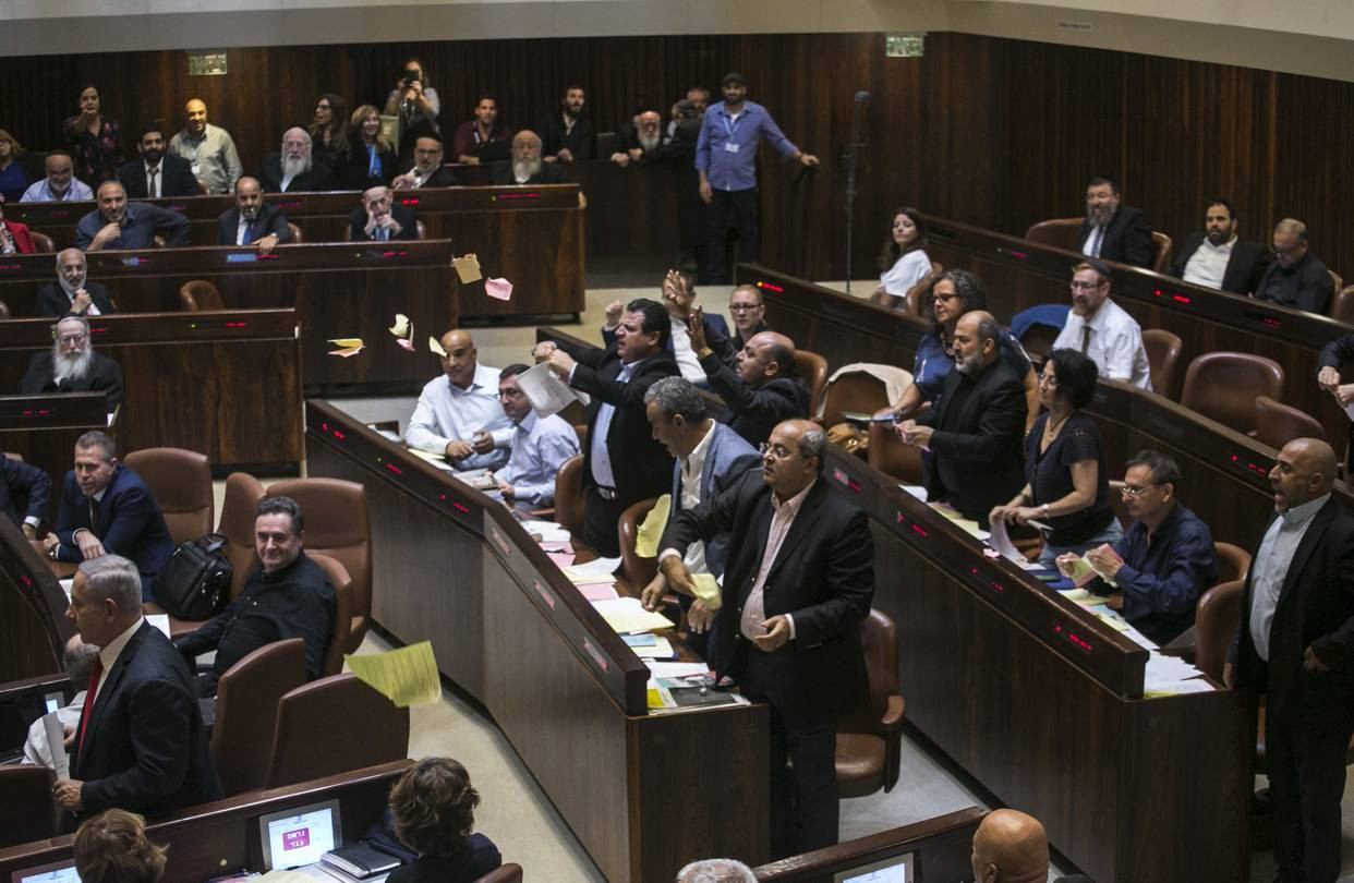 Poslušali smo izraelskega premierja Benjamina Netanjahuja. Zaskrbljeni starši, ne bojte se preveč, kajti Izrael se zaenkrat junaško brani. Izraelski kneset je pred tednom dni z 62 glasovi za in 55 proti sprejel zakon o nacionalni državi, in sicer kot enega temeljnih zakonov, ki funkcionirajo kot de facto ustava Izraela. Zakon je v parlamentu sprožil burno razpravo, nekateri njegovi poslanski nasprotniki pa so ob razglasitvi rezultatov glasovanja klicali, da gre za apartheid, mahali s črnimi zastavami in cefrali kopije zakona. Poleg tega so zakon pospremili nekajtisočglavi protesti. Zakon namreč kritiki vidijo kot rasističen proti manjšinskemu arabskemu prebivalstvu.