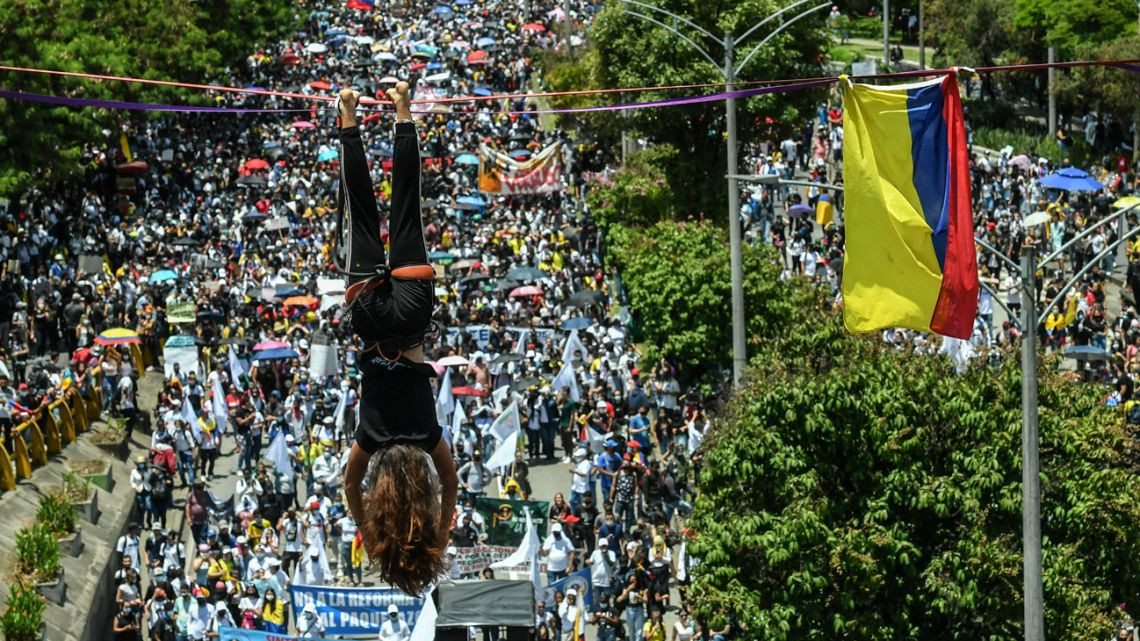 28. aprila so protestniki začeli stavkati pod organizacijo Nacionalnega komiteja za stavke, ki ga sestavljajo večji sindikati. Protest je bil v nasprotju z vladnim odlokom, ki zaradi epidemije prepoveduje proteste. Protestniška parola se je glasila "za življenje, mir, za demokracijo in proti Duqejevemu paquetazu". Mišljen je paket varčevalnih ukrepov vse bolj nepriljubljenega predsednika Ivana Duqeja. Prvotna iskra protestov je bila predlagana davčna reforma, ki je del tega paketa. Reforma bi zvišala davke, med drugim DDV, kar je predsednik pospremil z besedami "ta reforma ni modna muha. Je nujna za ohranitev socialnih programov", med katere spada na primer nadomestilo za brezposelnost, ki je trenutno 16-odstotna, kar je 7 odstotnih točk višja kakor pred pandemijo. Protestniki so opozarjali, da bi takšen dvig davkov najbolj prizadel revnejše ljudi in srednji razred. Richard McColl, novinar podcasta Columbia calling, predstavi davčno reformo in problem pomanjkanja zaupanja v vlado.