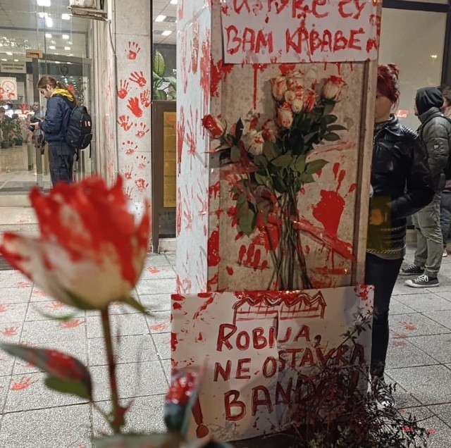 V Novem Sadu so včeraj potekali doslej največji protesti po petkovi tragediji na tamkajšnji železniški postaji, v kateri je po zrušitvi betonskega nadstreška umrlo 14 ljudi, med njimi tudi dva otroka, tri osebe pa ostajajo v smrtni nevarnosti. Protestniki zahtevajo prevzem odgovornosti za nesrečo, ki je po njihovem posledica malomarnosti in koruptivnih poslov, v katere je Srbska napredna stranka na čelu z Aleksandrom Vučićem brezsramno vpletena, že odkar je prišla na oblast pred desetimi leti. V Novem Sadu so protestniki v mestno hišo metali rdečo barvo in kamenje, pred vhod stavbe pa so iz cistern, pripeljanih s pomočjo traktorjev, zlili še fekalije. Skupina zamaskiranih protestnikov se je z jajci in drugim protestnim materialom spravila nad novosadske prostore Vučićeve Srbske napredne stranke. Proteste je poskušala zadušiti policija, ki se je nad množice spravila s solzivcem, več oseb pa je tudi pridržala.