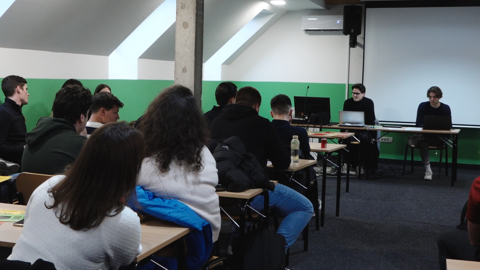 Seja se je končno začela, ko se je pri drugi točki dnevnega reda, volitvah podpredsednika Študentskega zbora, zopet zataknilo. Predsednik študentskega zbora Matej Igličar je k predstavitvi povabil edinega kandidata, a ga je prekinil Kristjan Slunjski, poslanec Povezanih s Šolskega centra za pošto, ekonomijo in telekomunikacije, ki je zaradi nestrinjanja s snemanjem predlagal 5-minutni odmor.