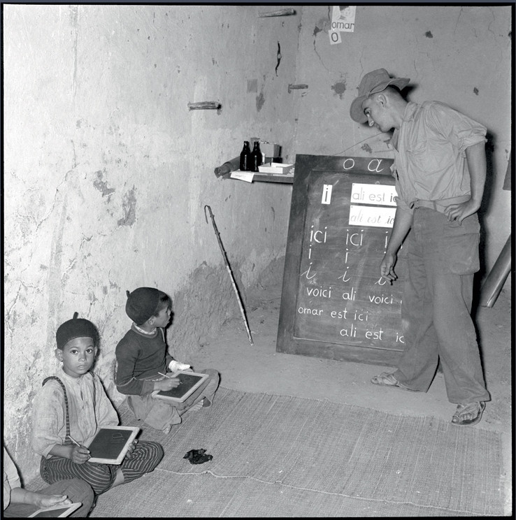 Avgusta leta 1958 so francoske oblasti izdale odredbo, ki naj bi začela množičnejše izobraževanje Alžircev. To je bilo uspešno zgolj deloma, saj se je v šolskem letu 1961/62 šolalo 40 odstotkov alžirskih dečkov in dobrih 20 odstotkov deklic. Za francoske oblasti so šole med vojno predstavljale pomemben način zagotavljanja po eni strani discipline in nadzora nad lokalnimi otroci in njihovimi družinami in po drugi strani širjenja profrancoske propagande. Tako so začeli pospešeno graditi šole in mobilizirati učitelje. Ker je slednjih primanjkovalo, je vojska na učiteljska mesta, predvsem v ruralnih predelih, nameščala kar vojake. Konec 50-ih let je denimo tako več kot tisoč aktivnih vojakov služilo kot šolski učitelji. Namen tako pospešenega šolanja navedimo z besedami regionalnega biroja za psihološko akcijo iz leta 1958: