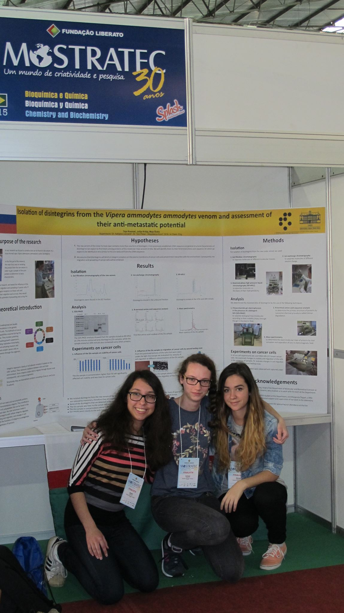 Julija Križaj, Maja Šubic in Teja Kosmač, dijakinje 4. letnika gimnazije Jurija Vege v Idriji, so konec oktobra letos osvojile zlato medaljo na največjem naravoslovnem južnoameriškem tekmovanju Mostratec. V svoji raziskovalni vlogi so odkrivale učinke proteinov disintegrinov, ki se nahajajo v modrasovem strupu in rakavim celicam preprečujejo, da bi metastazirale, torej da bi se iz rakavih razširile v zdrava tkiva.