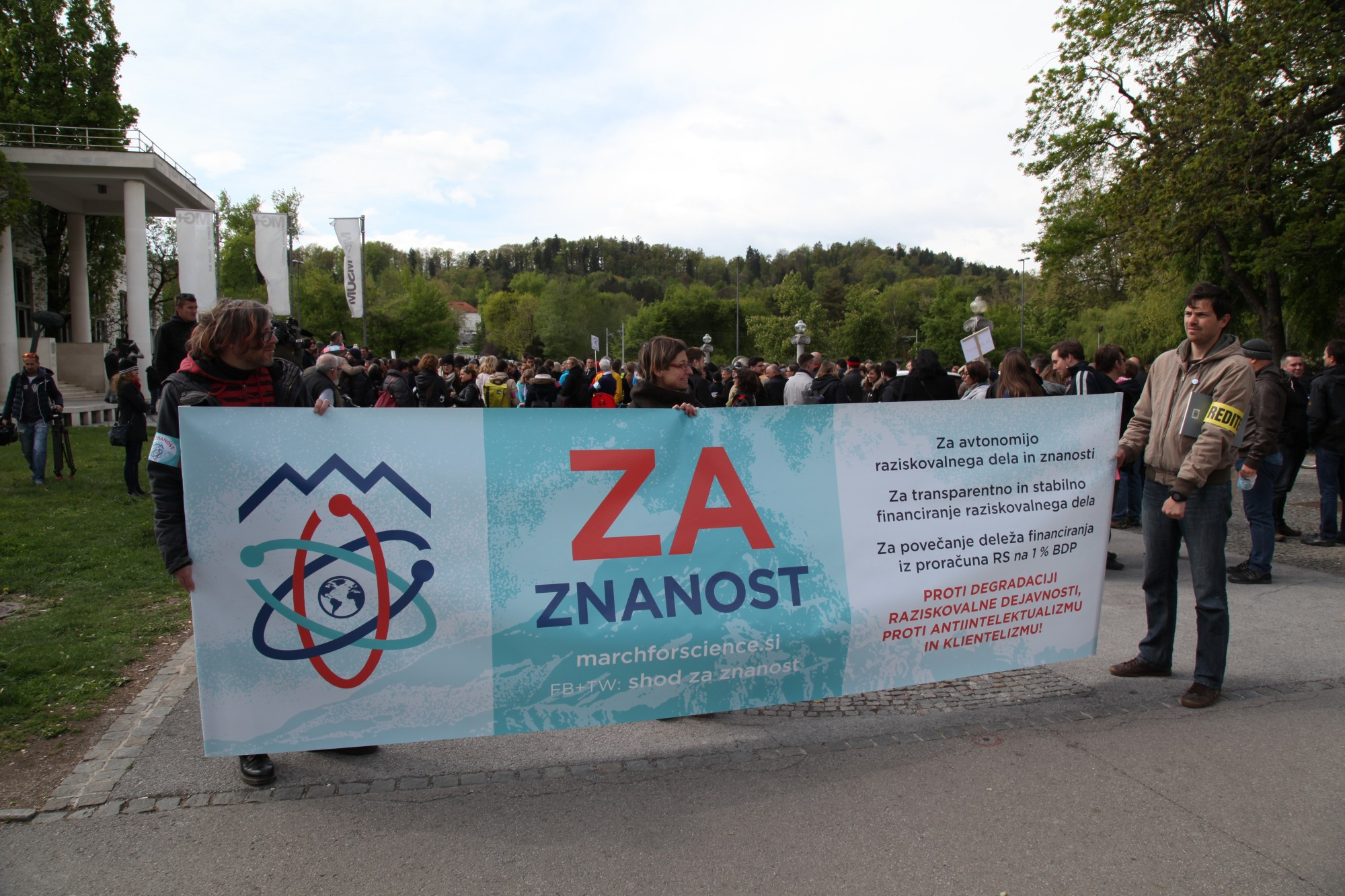 Takšen organizacijski odbor se je oblikoval tudi v Sloveniji pod imenom »Shod za znanost«. Ravno včeraj je minilo šest mesecev, odkar se je okoli 1000 podpornikov shoda odpravilo na ulice Ljubljane. Prisluhnimo, kaj so imeli povedati takrat: