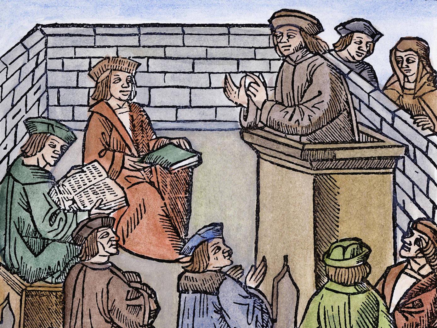 Na nemških univerzah v srednjem veku so imeli svoj specifičen ritual. Latinski spis Manuale Scholarium [manuale skolarium] navaja prakso, ki naj bi jo izvajali na še danes sloveči univerzi v Heidelbergu: nove študente naj bi oblekli v kostum pošasti, nakar naj bi starejši študenti kostum raztrgali, študenta simbolično usmrtili in ga po telesu namazali z živalskimi iztrebki.