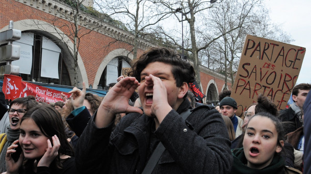 Zadnjih nekaj tednov se aktivno mobiliziramo proti nenehnim napadom na univerze in srednje šole. Vlada se je odločila odpraviti naše socialne dosežke in našo pravico do vsem dostopne, brezplačne javne izobrazbe. Predlog zakona Orientacija in uspeh študentov bi tistim z najbolj negotovim ozadjem preprečil vstop na univerzo. S tem bi se institucionaliziral proces selekcije na podlagi našega — resničnega ali pa domnevnega — socialnega ozadja in na podlagi sredstev naših staršev. Obenem si vlada prizadeva za odpravo baccalauréata*2 ter načrtuje reformiranje srednjih šol po logiki Študentskega načrta*3. Študentski načrt ne zahteva le selekcije na podlagi socialnega položaja, ampak tudi odpravo možnosti kompenzacije*4 in možnosti ponovnega opravljanja izpitov. Povrh tega pa predvideva prilagajanje naših univerz potrebam trga in ustanavljanje vedno bolj konkurenčnih fakultet, ki bodo dostopne le peščici. V isto smer gredo načrti, ki predvidevajo spojitev univerz ter ustanavljanje novih grands établissements*5.