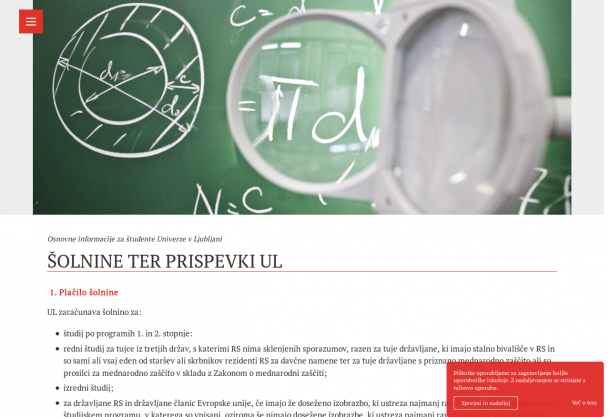 Poglejmo, katere prispevke za študij morajo študentje plačati iz lastnega žepa. Na Univerzi v Ljubljani prispevke študentov ureja Pravilnik o prispevkih in vrednotenju stroškov, ki ga vsako leto sprejme Upravni odbor Univerze. Pravilnik za tekoče študijsko leto opredeljuje naslednje prispevke za študij: