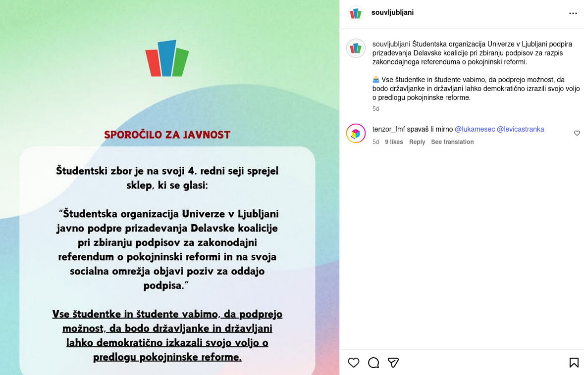 Govorile bomo še o glasovanju glede seznanitve s predlaganimi dopolnitvami Statuta ŠOU, ki je v neskladju s študentsko ustavo, in o tem, kako se je ŠOU opredelil glede referenduma proti pokojninski reformi.