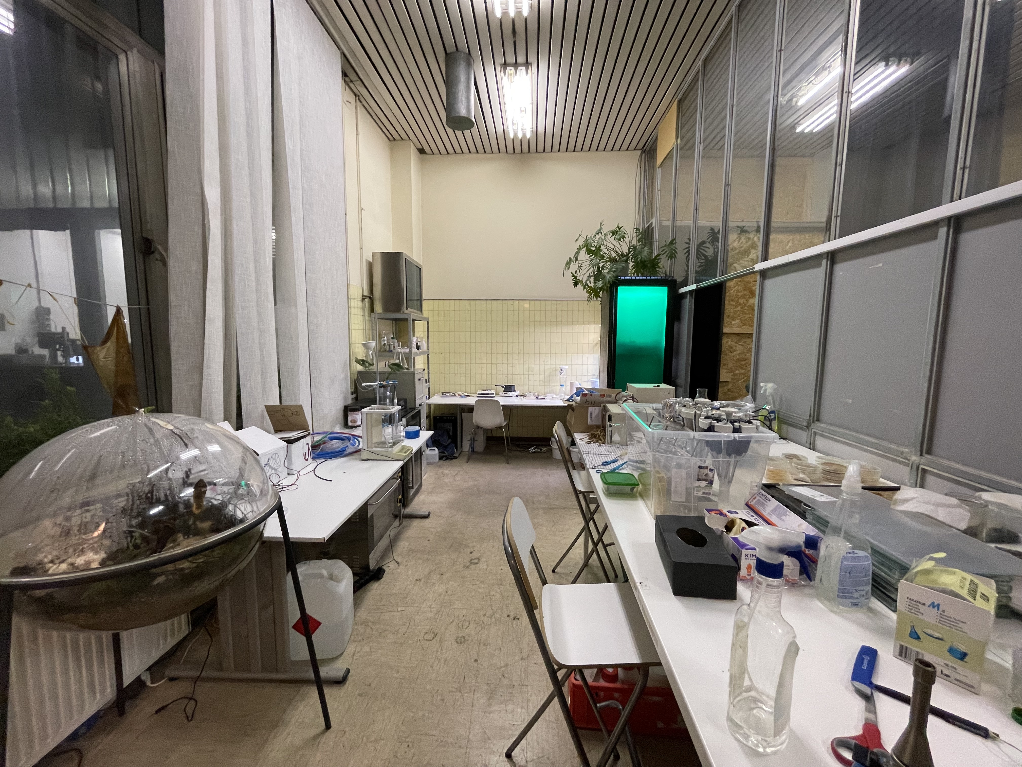 Da smo si pobližje ogledali biohekanje, smo obiskali znanstvenoumetniški laboratorij Biotehna, ki deluje v okviru zavoda Kersnikova in predstavlja platformo za umetniško raziskovanje živih sistemov. Odprt je za zainteresirano javnost in omogoča raziskave, neodvisno od etabliranih akademskih institucij. Je edini delujoč laboratorij, ki se ukvarja z garažno biologijo v Sloveniji. To pa ne pomeni, da smo se dobili v garaži, ampak v bolj ali manj improviziranem laboratoriju, kjer so si kar nekaj naprav, ki jih uporabljajo, naredili sami. Skozi delovanje Biotehne nas je popeljal njen strokovni vodja.