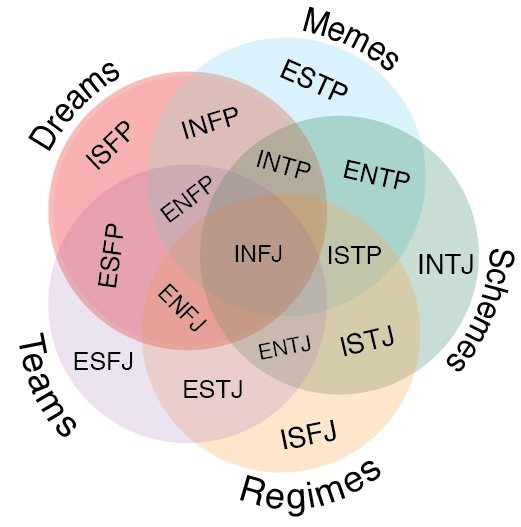 Vsak izmed profilov je sestavljen iz osmih funkcij oziroma specifičnih načinov delovanja. Pri vsaki posameznici ali posamezniku so štiri izmed teh funkcij bolj razvite in usmerjajo njeno ali njegovo delovanje. Posamičen tip osebnosti zato poimenujemo s štirimi črkami, ki nakazujejo imena in posledično tudi prisotnost štirih primarnih funkcij. Pred glasbenim oddihom smo vseh osem funkcij razložili na primeru dveh tipov osebnosti: ENTP in INTJ. Zdaj nadaljujemo z razmislekom o sami naravi tipologije in vprašalnika MBTI, pozneje pa se bomo posvetili tudi problemom interpretacije rezultatov.