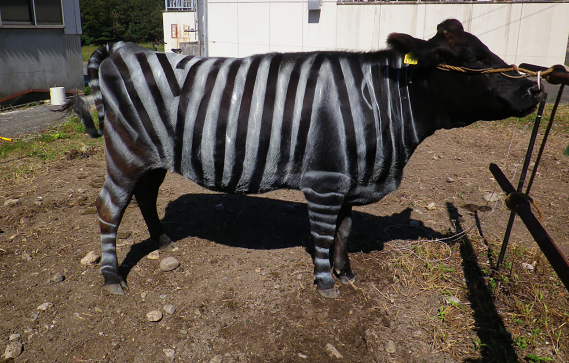 Skupina raziskovalk in raziskovalcev je tokrat za znanost na krave risala zebrine črte. Želeli so ugotoviti, če tako narisane proge na kravah odganjajo obade ter ostali grizoči mrčes, ki govedu pije kri, tako dobesedno kot tudi figurativno.