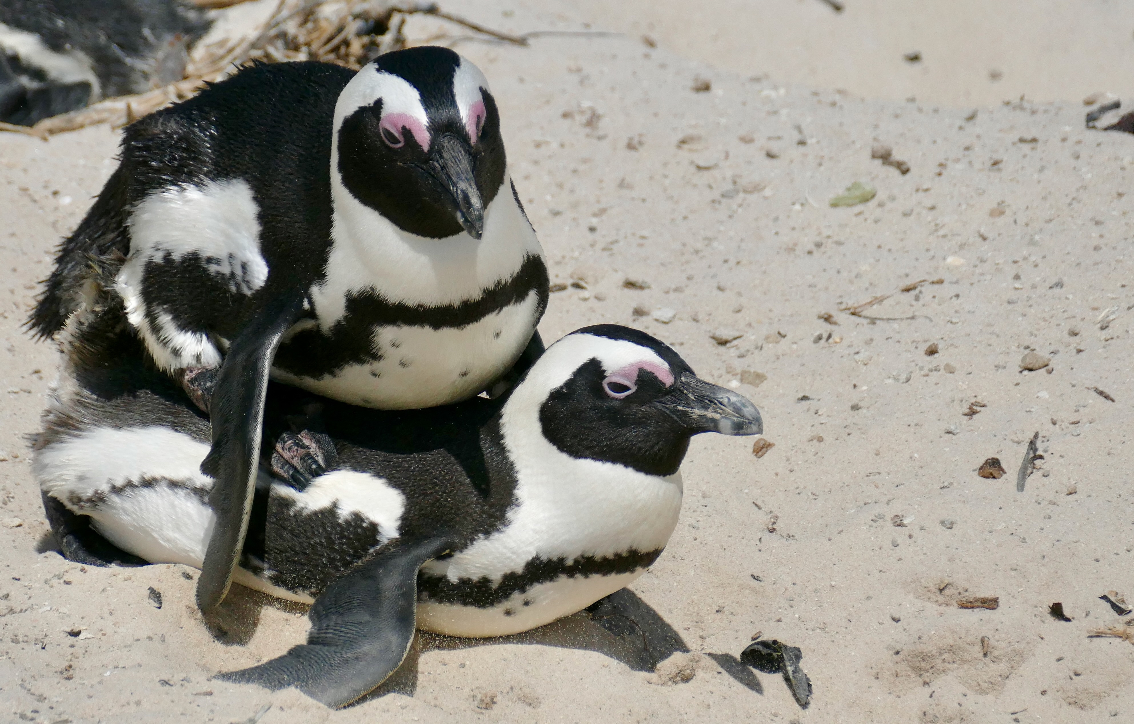 Afriški pingvini so monogamne živali. Istega partnerja praviloma obdržijo celo življenje. Raziskovalke in raziskovalce je zanimalo, ali si pingvini pri prepoznavi svojega partnerja pomagajo s pikčastim vzorcem na prsih. Ta, za vsakega pingvina unikaten vzorec na sprednji strani telesa se pojavi v obdobju nekaj mesecev od rojstva in se ne spreminja. Na formiranje vzorca naj ne bi vplivali okoljski dejavniki, kot sta količina hrane in temperatura okolice med razvojem osebka. Omenjene vzorce pa pri razločevanju posameznih pingvinov v ujetništvu pogosto uporabljajo tudi oskrbniki živalskih vrtov.
