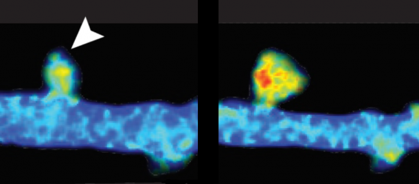 Raziskovalci so torej preučevali, kaj se na molekularni ravni dogaja pri procesu učenja in tvorjenju spomina. Njihovo delo je temeljilo na simuliranju učenja na enem dendritskem trnu v možganih podgane naenkrat. Vanj so previdno sprostili nekaj nevrotransmiterja glutamata in dosegli aktivacijo sinapse. Pri tem je, po pričakovanjih, dendrit začel rasti in v sinaptično špranjo se je sprostil nevrotropin oziroma rastni faktor BDNF, ki je aktiviral svoj receptor TrkB. Prav ti molekuli sta namreč ključna molekularna določevalca tega, kaj se naučimo in česa ne, in sta bili v središču raziskovanja.