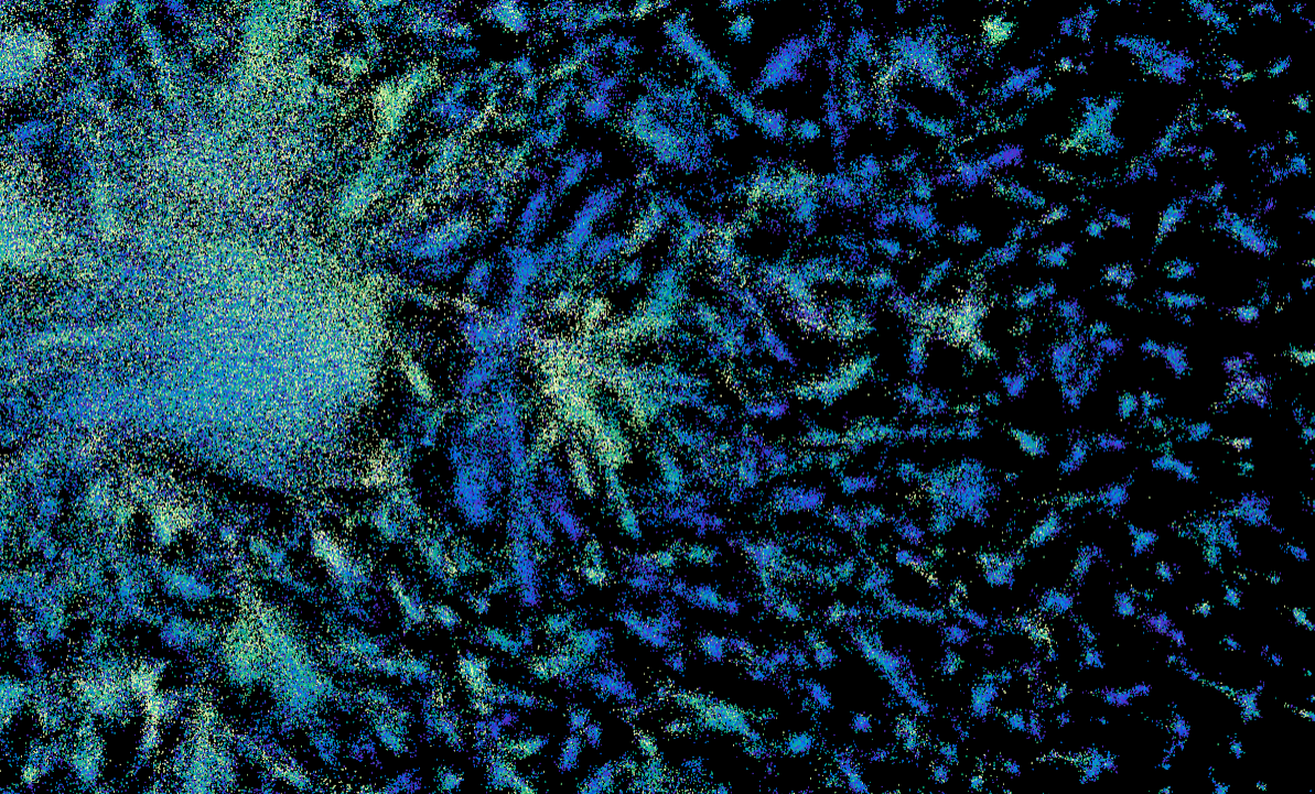 Vir slike: Zaslonski posnetek spletne strani https://esmatlas.com/explore (vsaka pika na sliki predstavlja napovedano strukturo proteina)