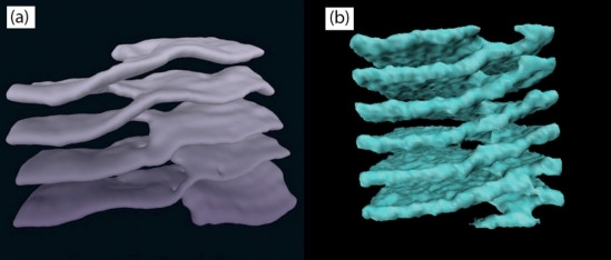 Pred nekaj leti so na področju biofizike bolje preučili endoplazemski retikulum. Endoplazemski retikulum je celični organel, v katerem se proteini sintetizirajo, zvijajo in po njem prevažajo. V njem so naloženi membranski sloji v obliki velikih plošč, ki so povezane z manjšimi vijačnimi strukturami. Ta del endoplazemskega retikuluma si lahko predstavljamo kot garažo, v kateri so nadstropja povezana z zavitimi prehodi.
